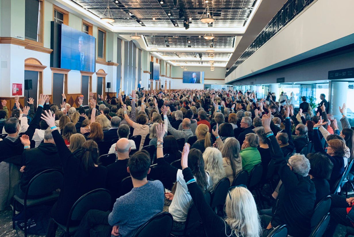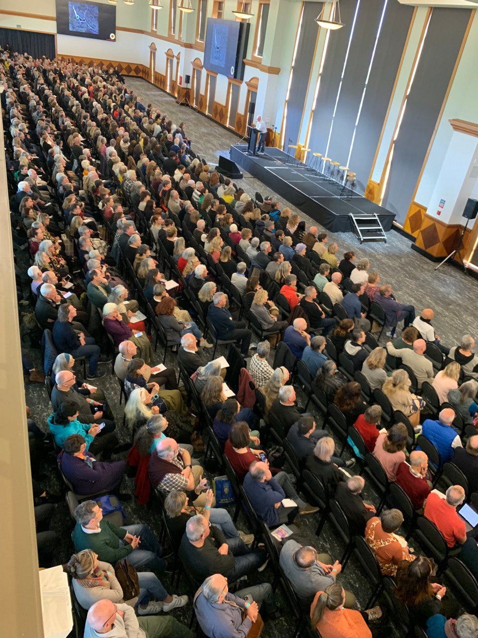He retold the story of how the New Zealand Medical Council hounded him, for simply doing his job “First, do no harm” and trying to help his patients navigate the propaganda. He has since been exonerated, but many other members are continuing to overcome the unnecessary harassment from what we now know to be a corrupt arm of a captured Government. One of the most profound elements of Matt’s presentation was the moment he asked the audience to raise their hand if they knew a close friend or family members who was confirmed or suspected as being harmed by the injection. (New Zealand’s population was highly ‘vaccinated’ almost exclusively by Pfizer’s Comirnaty). This photo captures our response: