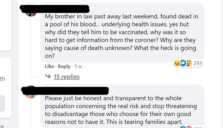 Tens of thousands - a friend reckons about 36,000 - of personal stories of grief and frustration were deleted because these were uncomfortable truths for the Government obsessed with power. For many of Jacinda’s then-fans, this may have been their first experience of censorship. Because if you don’t get censored, you don’t know it exists. They had likely already been gaslit, censored and defamed, by friends and family, GPs and colleagues - and were desperate to be heard. I screenshot three of these comments at the time (posted below). It breaks my heart to re-read these now and think of those who innocently tried to reach out for help that day, who perhaps genuinely believed the propaganda of the ‘safe and effective’? The image of Jacinda as a ‘caring and kind’ leader was broken. Many were confused or frustrated, some were understandably angry. These were a catalogue of multiple deaths and disabilities from a propagandized public: